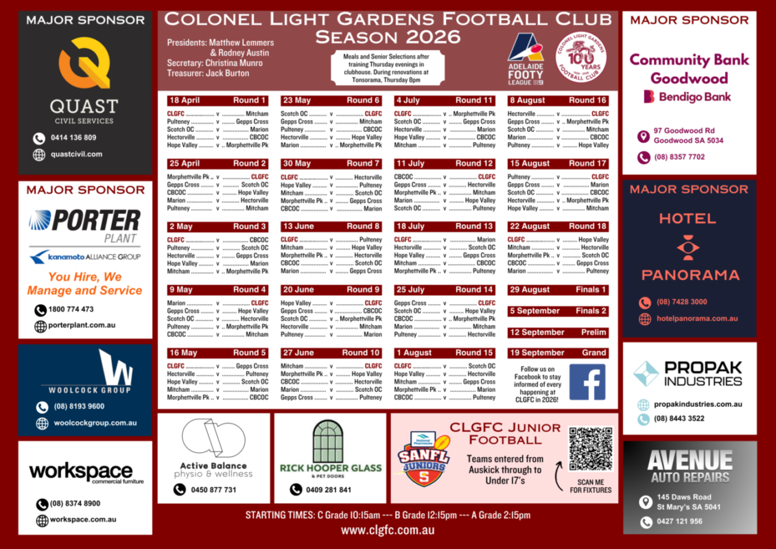 The Colonel Light Gardens Sports and Social Club is affiliated with the South Australian Amateur Football League (seniors) and the Metro South Junior Football League (juniors).